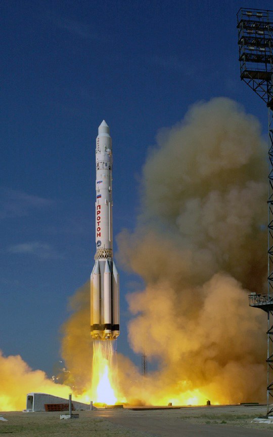 Zvezda finally launches from the Baikonur Cosmodrome atop the Proton rocket on 12 July 2000, to begin its flight to orbit and the long chase to rendezvous and dock with the ISS. Multiple delays across the programme had pushed the launch of this critical component of the ISS back by over two years.