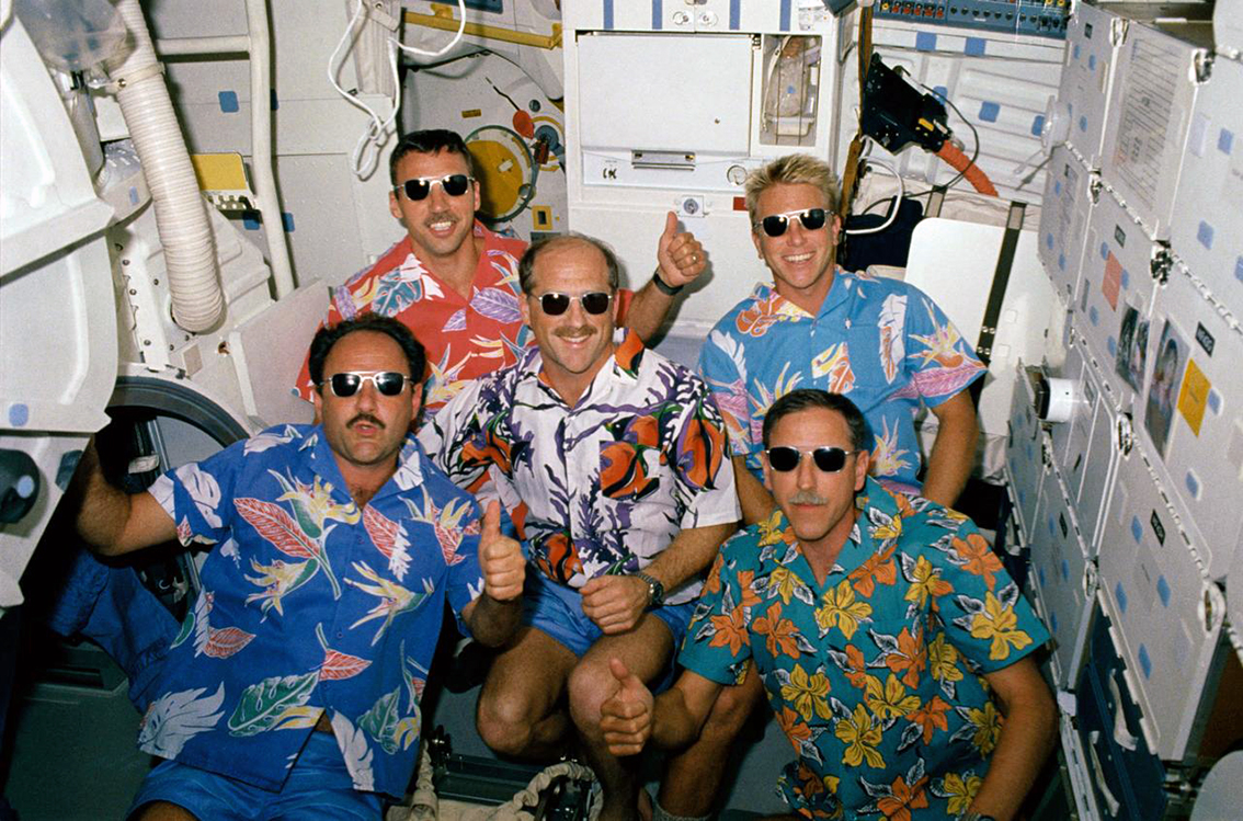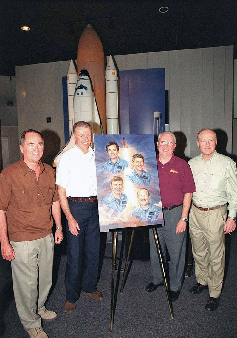 Shuttle support; support crew STS-1 (Contingency EVA Capcom Orbit 2 (Crimson) team; BUp Entry Capcom (Crimson) team); (14 Apr) End-Of-Mission (EOM) Orbiter power-down procedures Capcom; STS-2 support crew; (Nov) prime Capcom Entry (Crimson) team. |