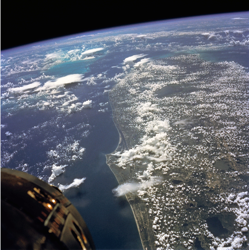 Pad 19 and the rest of the Kennedy Space Center, Cape Kennedy, Florida, are visible in this image taken from orbit during the mission.